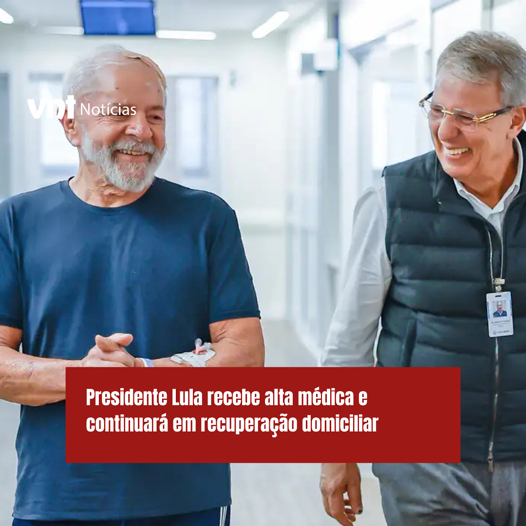 O presidente Luiz Inácio Lula da Silva recebeu alta neste domingo (15) do Hospital Sírio-Libanês, em São Paulo, onde estava internado desde a última terça-feira (10) para tratar um hematoma na cabeça, consequência de uma queda doméstica sofrida em outubro. De acordo com o cardiologista Roberto Kalil, que participou da coletiva de imprensa, Lula está liberado para deixar o hospital, mas continuará sob acompanhamento médico até quinta-feira (19). Durante este período, realizará exames de rotina, incluindo uma nova tomografia, para monitorar sua recuperação.